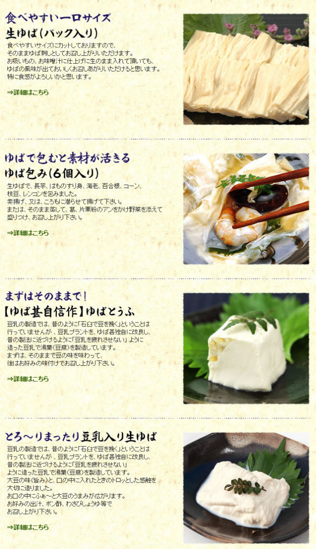 ように造った豆乳で湯葉(豆腐)を製造しています。
